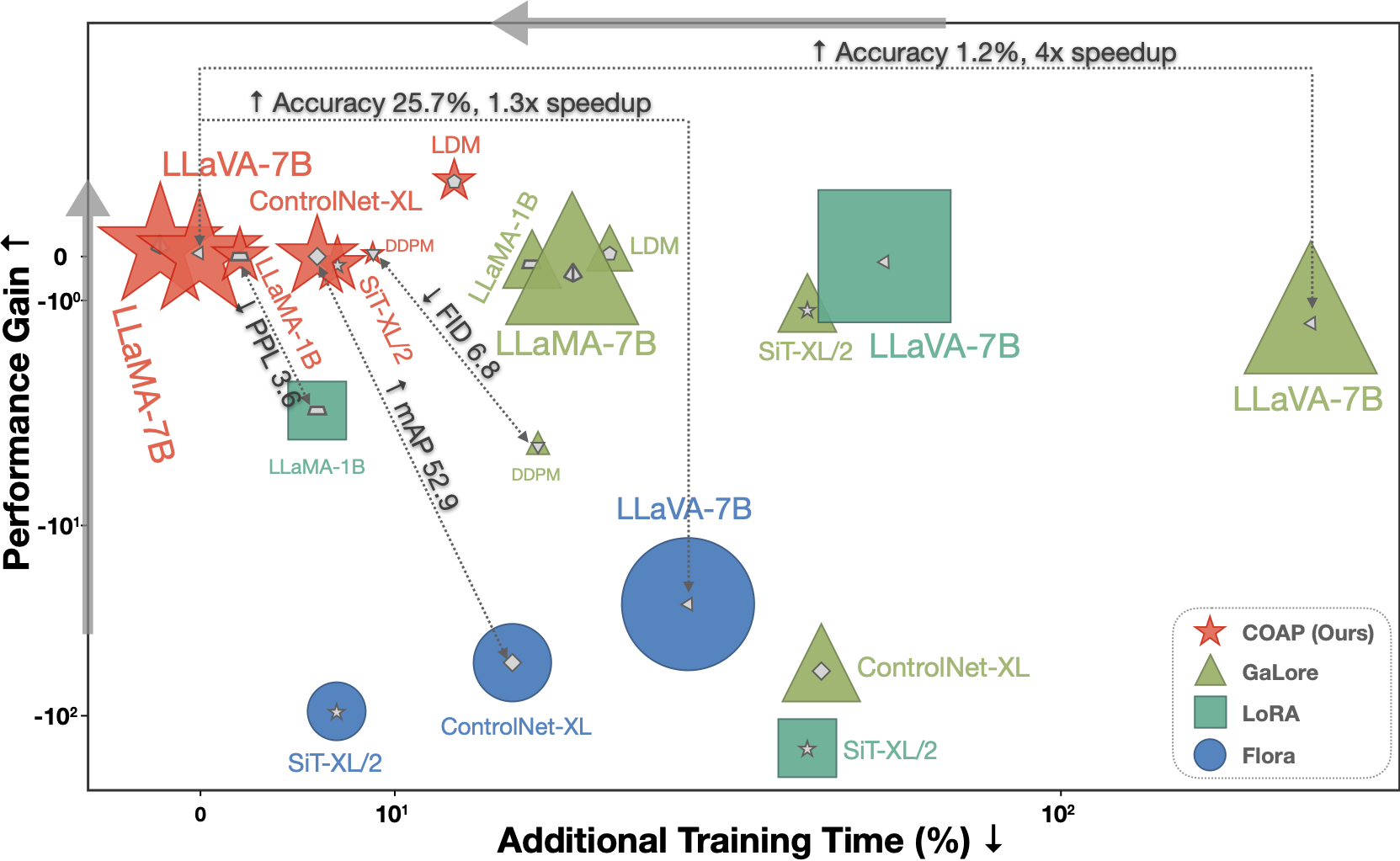 COAP: Memory-Efficient Training with Correlation-Aware Gradient Projection Jinqi Xiao, Shen Sang, Tiancheng Zhi, Jing Liu, Qing Yan, Linjie Luo, Bo Yuan IEEE Conference on Computer Vision and Pattern Recognition (CVPR), 2025. [arXiv] [Project] |